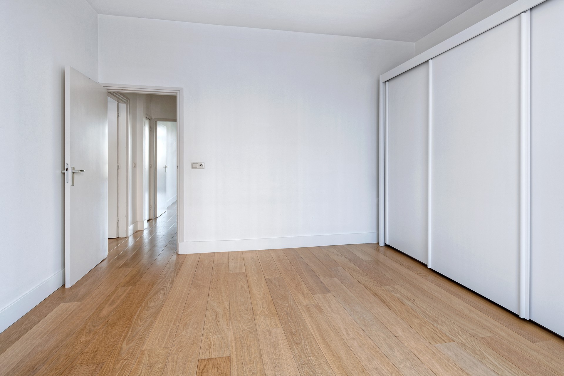 De woonkamer met openslaande deuren naar het balkon grenst aan de recentelijk gerenoveerde badkamer (2021) van circa 6 m² welke is voorzien van een ruime douche met elektrische handdoekrek, twee wastafels, een tweede toilet en vloerverwarming.