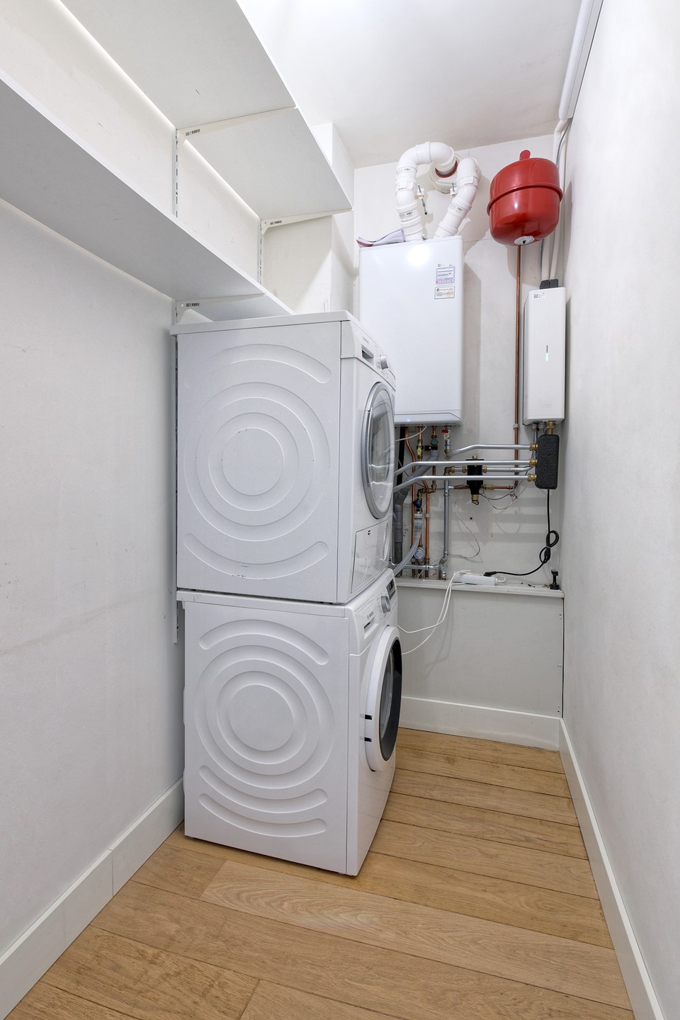 Naast deze tweede slaapkamer vindt u een opbergruimte waarin de CV-ketel, wasmachine en droger zijn geplaatst