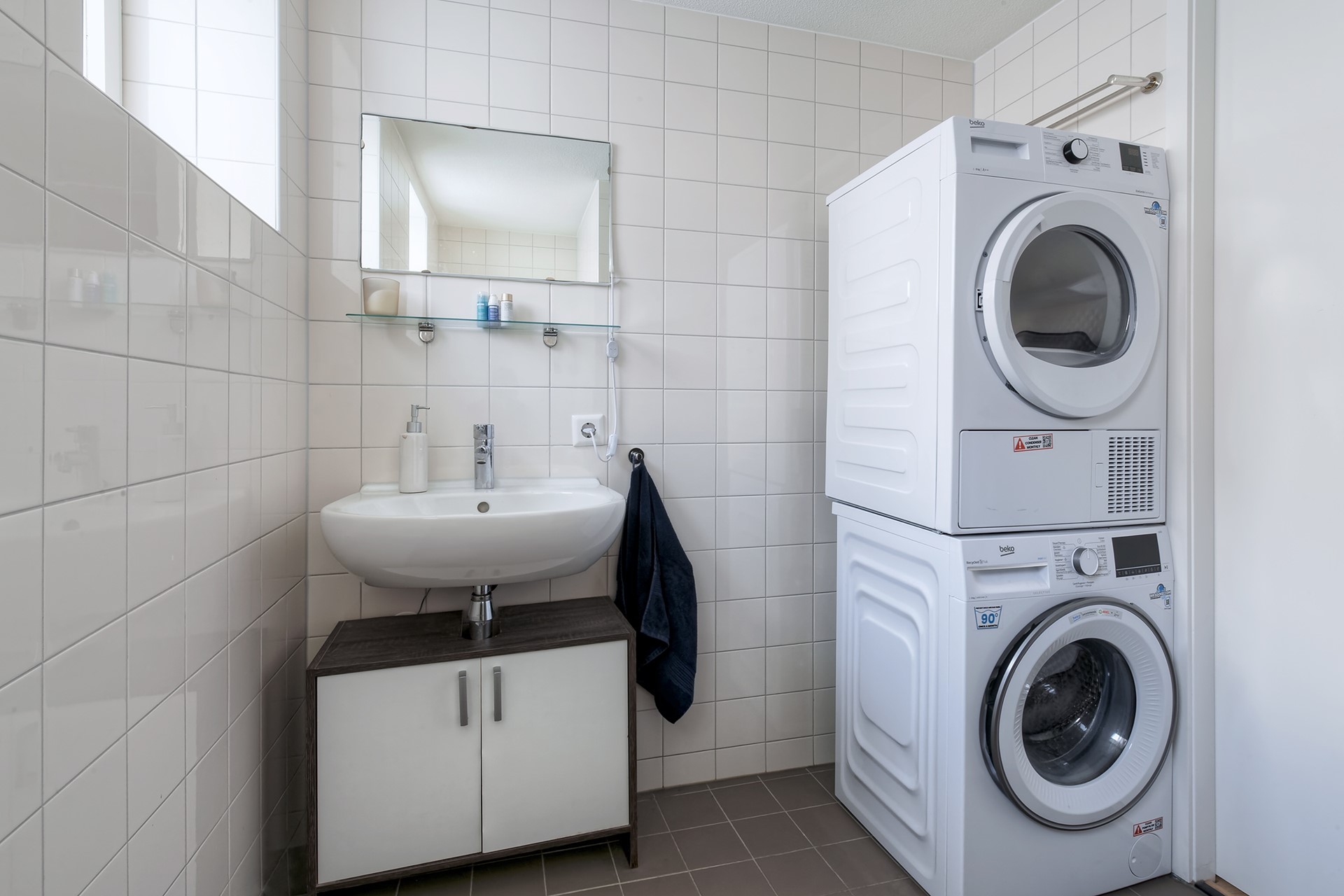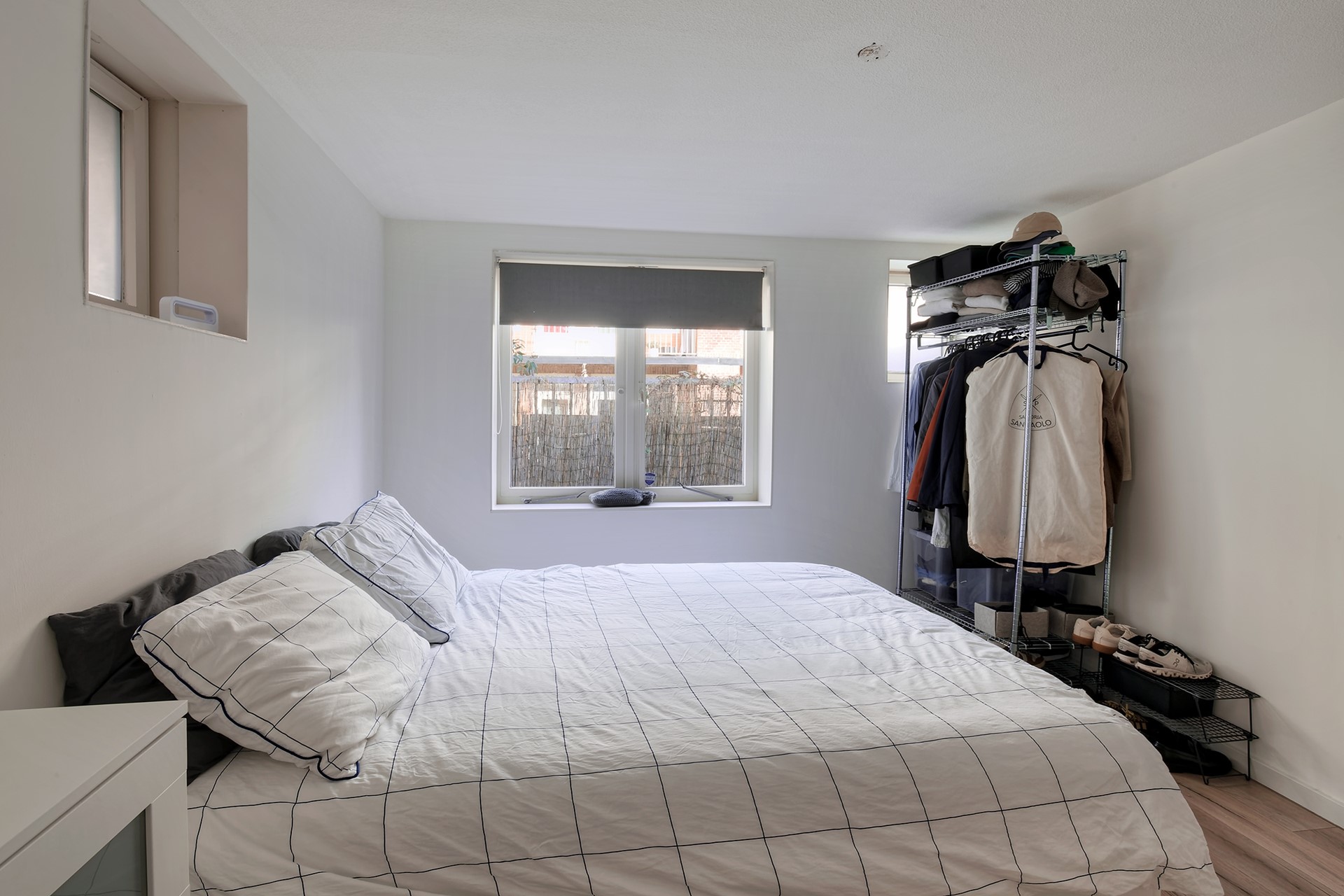 Aan de achterzijde bevindt zich de slaapkamer van goed formaat. Daarnaast beschikt de woning over een nette badkamer, voorzien van douche, toilet, wastafel en de aansluiting voor de wasmachine en droger.