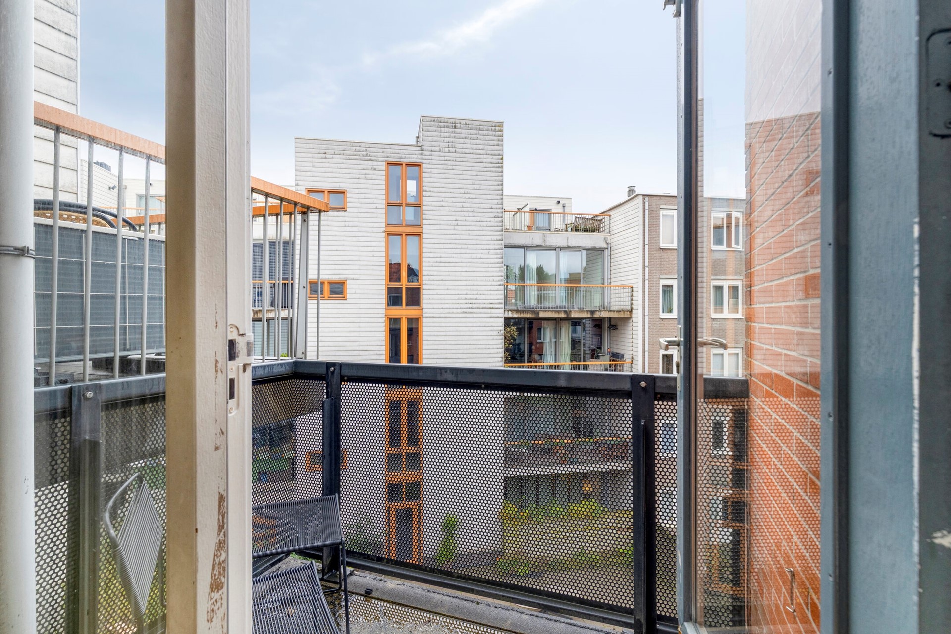 Entree via het gemeenschappelijke trappenhuis naar de derde verdieping. De hal geeft toegang tot de keuken en woonruimte. Vanuit de woonkamer bereikt u de eerste slaapkamer, die tevens toegang biedt tot het balkon. Naast de woonkamer leidt een gang naar het toilet, een wasruimte met wasmachine en droger, de badkamer, en uiteindelijk de tweede slaapkamer.