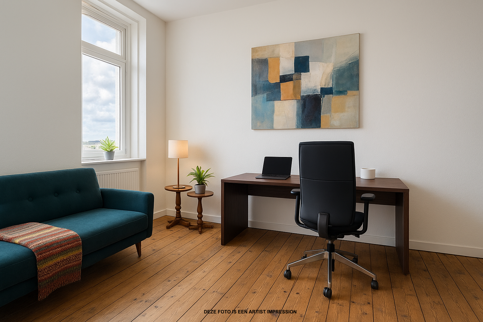 - Twee ruime slaapkamers, waarvan één nu ingericht als werkkamer;