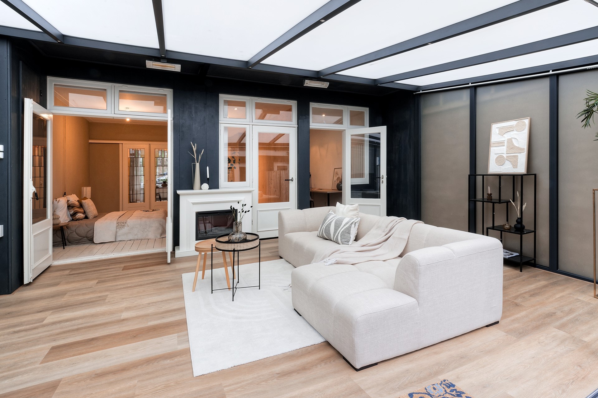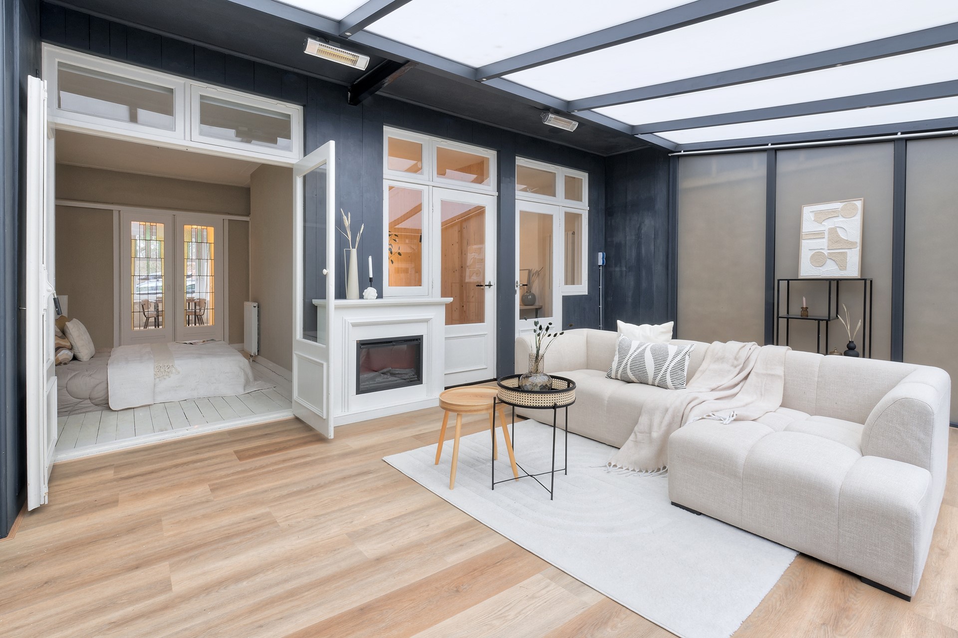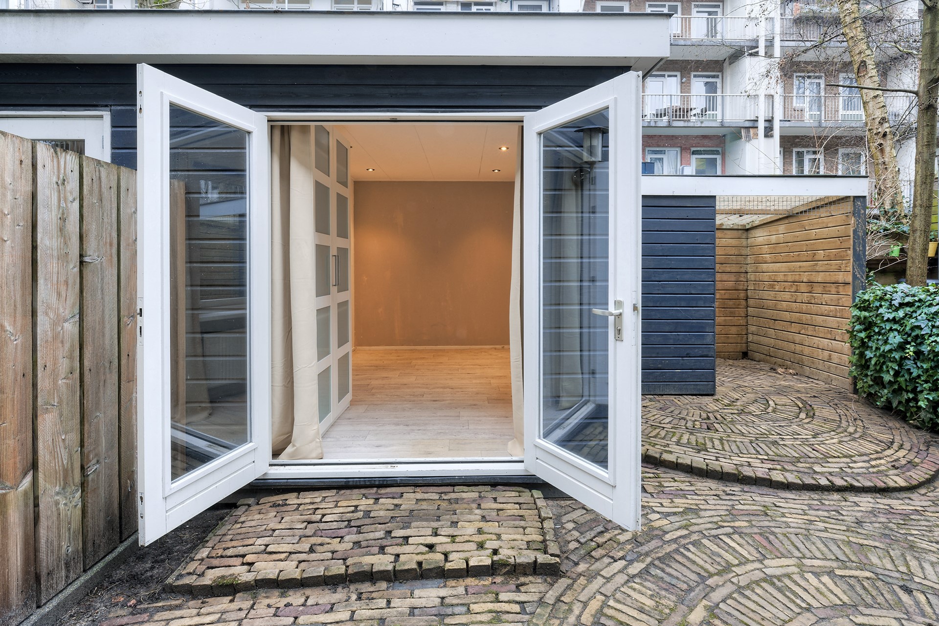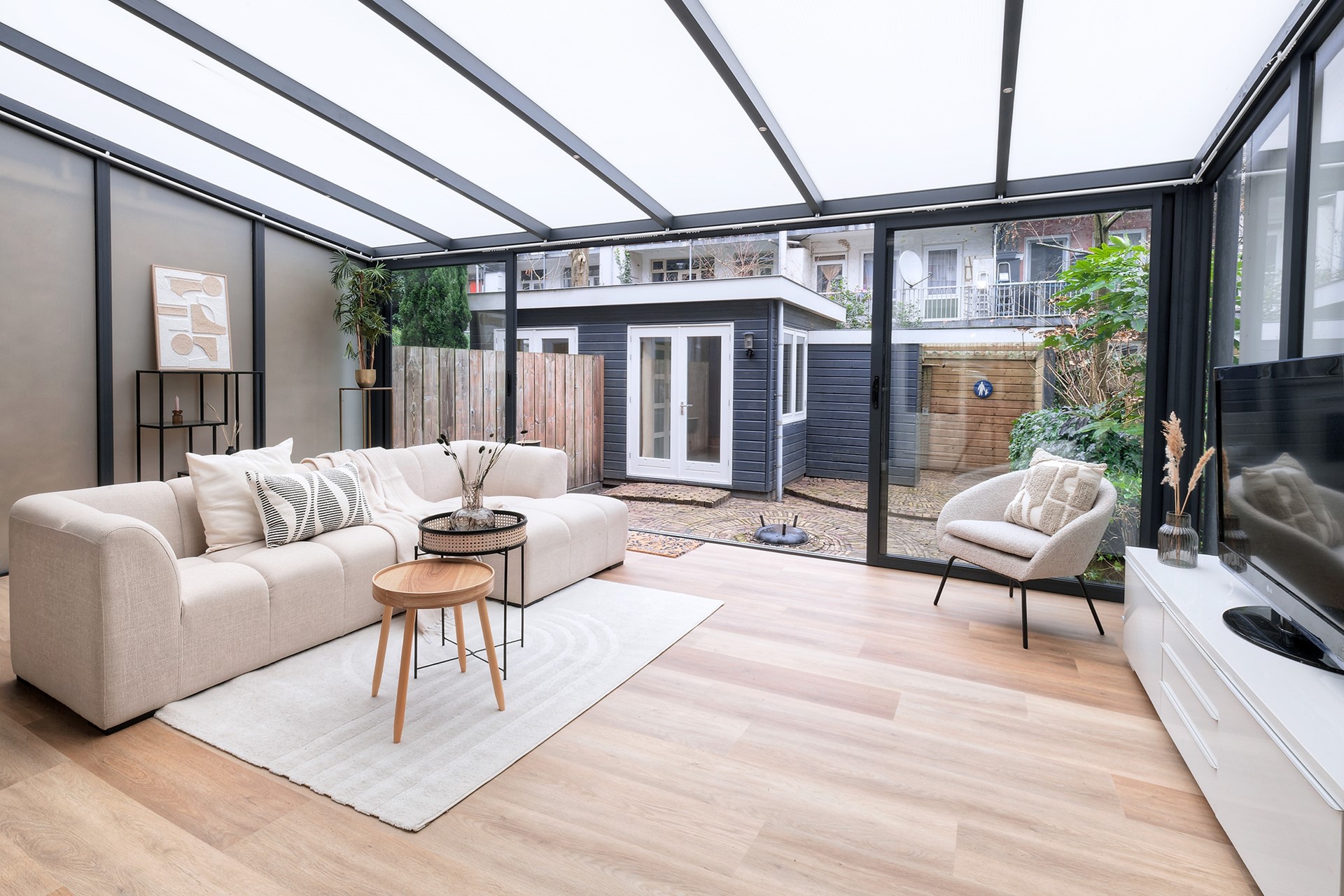 - Geïsoleerd en verwarmd tuinhuis (mogelijk derde slaapkamer)