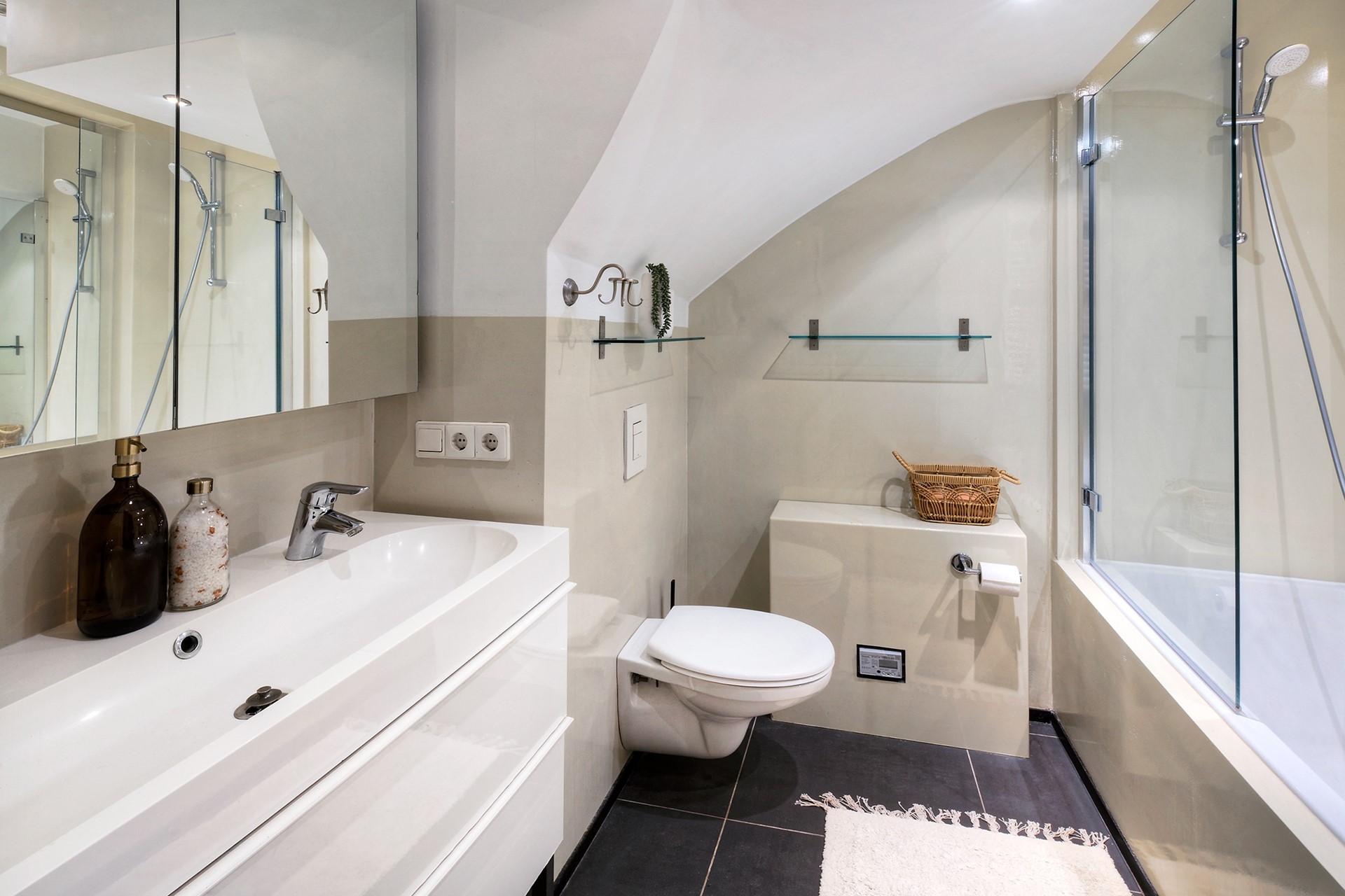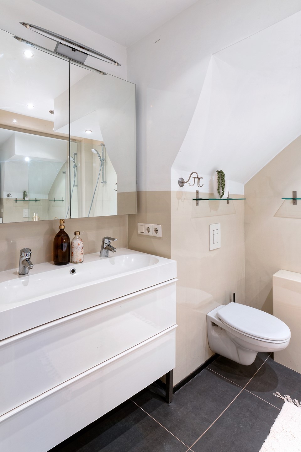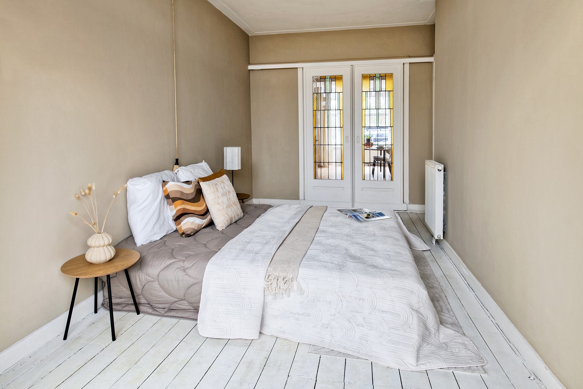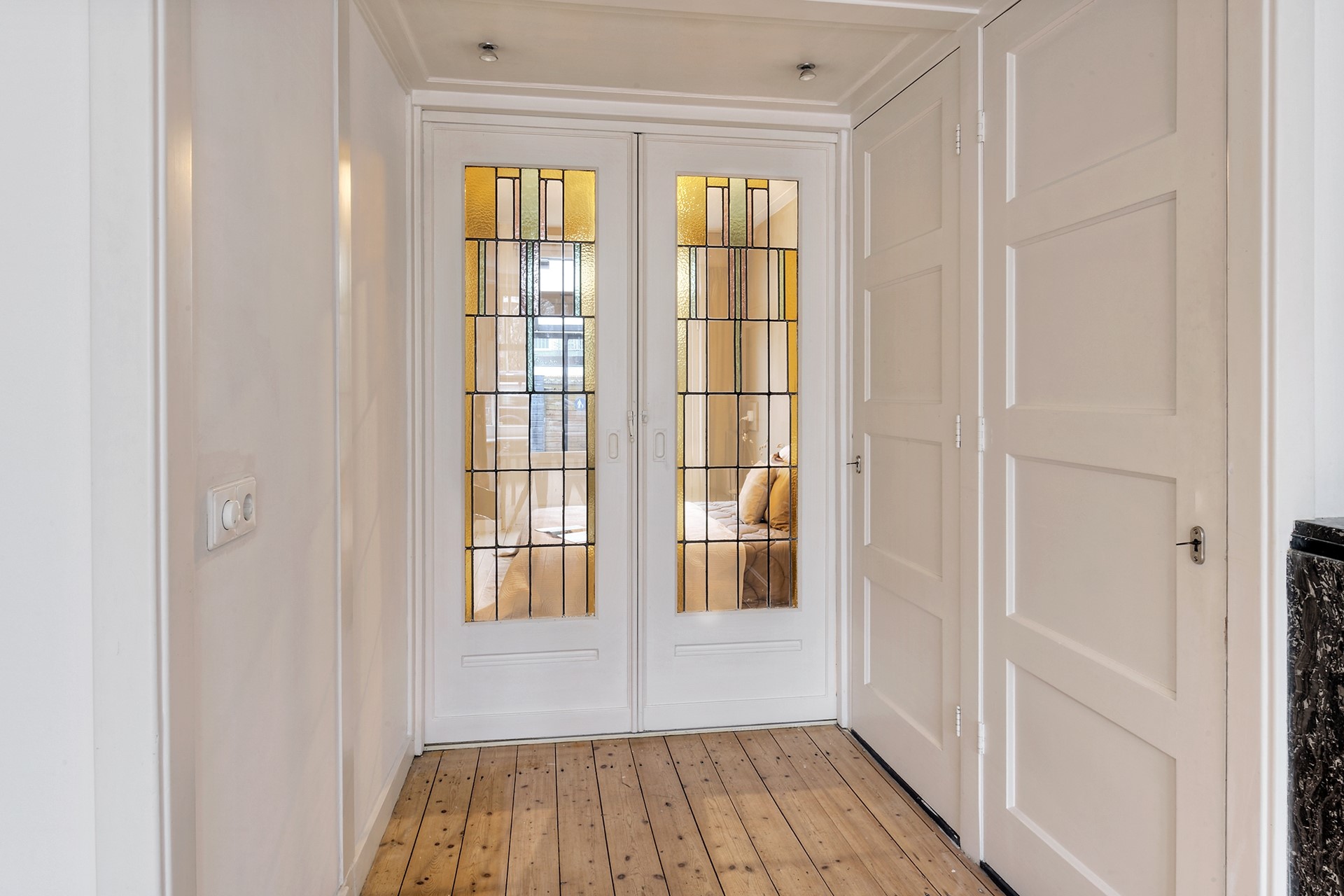 De ruime hal vormt geeft toegang tot de badkamer en de keuken. Vanuit de keuken bereikt u zowel de tuinkamer als de tweede slaapkamer, waardoor deze woning ook zeer geschikt is voor gezinnen, werken aan huis of logés.